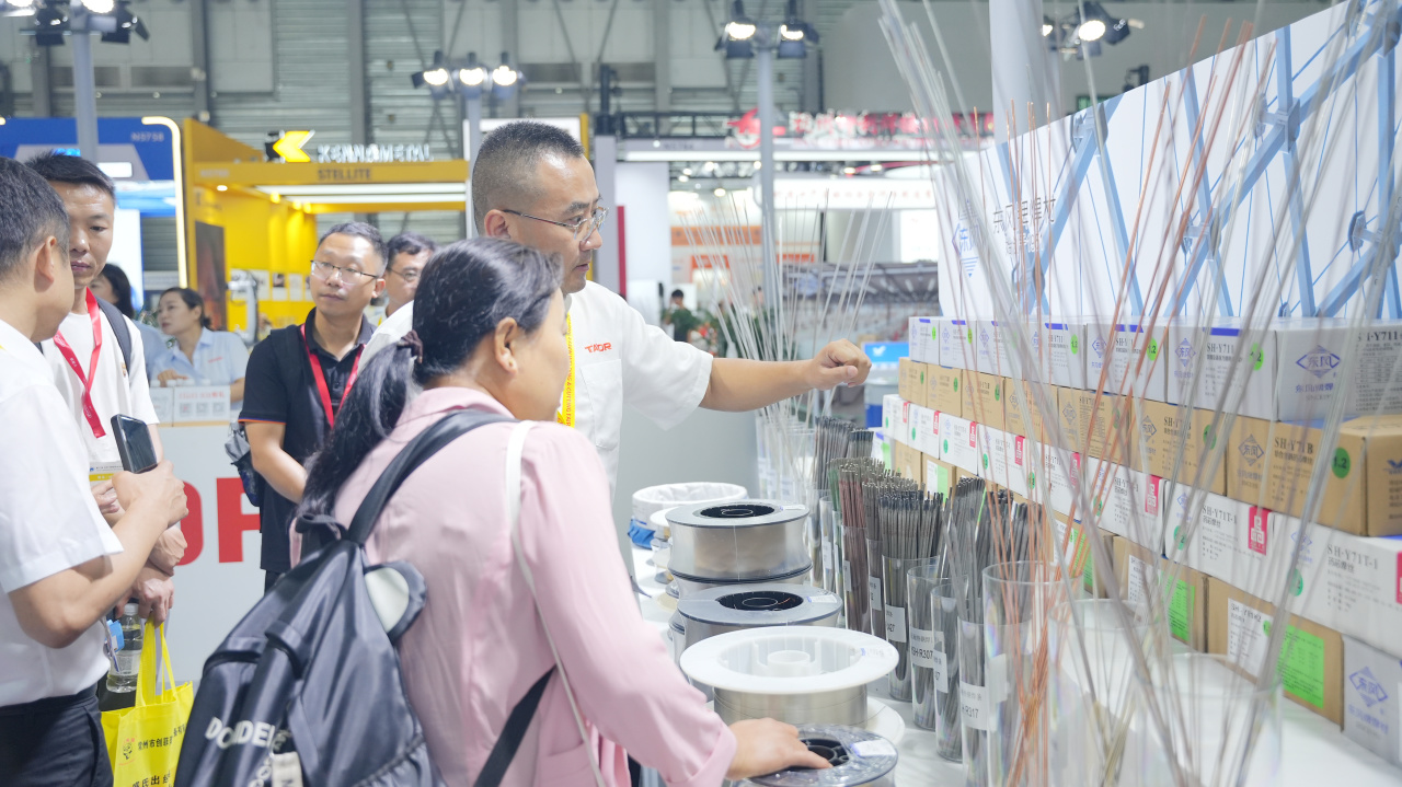 焊材展區展示了東風牌藥芯焊絲、實心焊絲、埋弧焊絲、電焊條系列產品,涵蓋低溫鋼、高強鋼、熱強鋼、不銹鋼、鎳及鎳合金、硬面堆焊各大類焊材,超低擴散氫碳鋼藥芯焊絲的熔敷金屬擴散氫含量可低至2.3ml/100g,碳鋼低溫鋼-75℃沖擊性能等達到行業領先水平,廣泛應用于航天航空、核工業、海洋工程、船舶制造、鋼結構、橋梁工程、壓容儲罐、軌道交通、石油化工、重型裝備、機械加工、管道施工等領域。七十年多年來為諸多重大工程項目如氣象衛星、核潛艇、核電站、磁懸浮列車軌道、載人航天飛船神箭系列、長征五號、港珠澳大橋、杭州灣大橋、北京大興國家機場、國家速滑館、亞運會奧體中心、成都天府機場、北京冬奧會奧運村、外高橋海工、海洋鉆井平臺等提供服務。