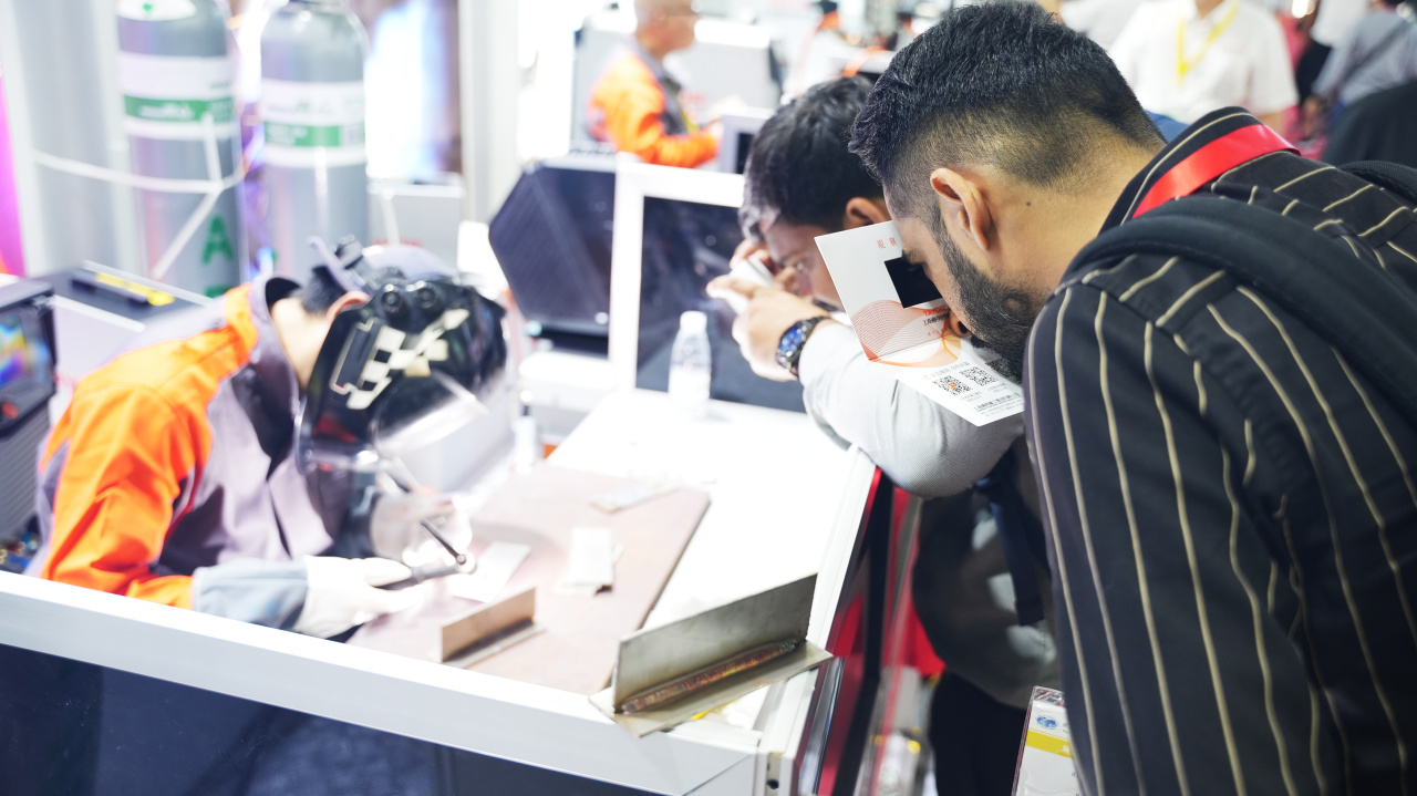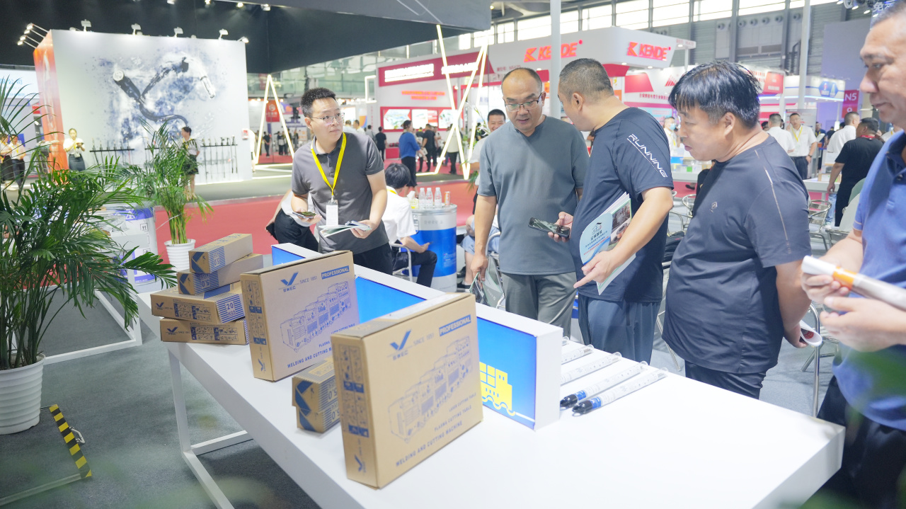 此次集團最矚目的參展展品無疑是公司最新研發的全數字碳化硅直流手工弧焊機ZX7-400X及全數字碳化硅直流脈沖氬弧焊機WSM-400X,前來咨詢的行業專業客戶絡繹不絕,公司研發同事為客戶詳細介紹了兩款焊機的強大功能與特點。